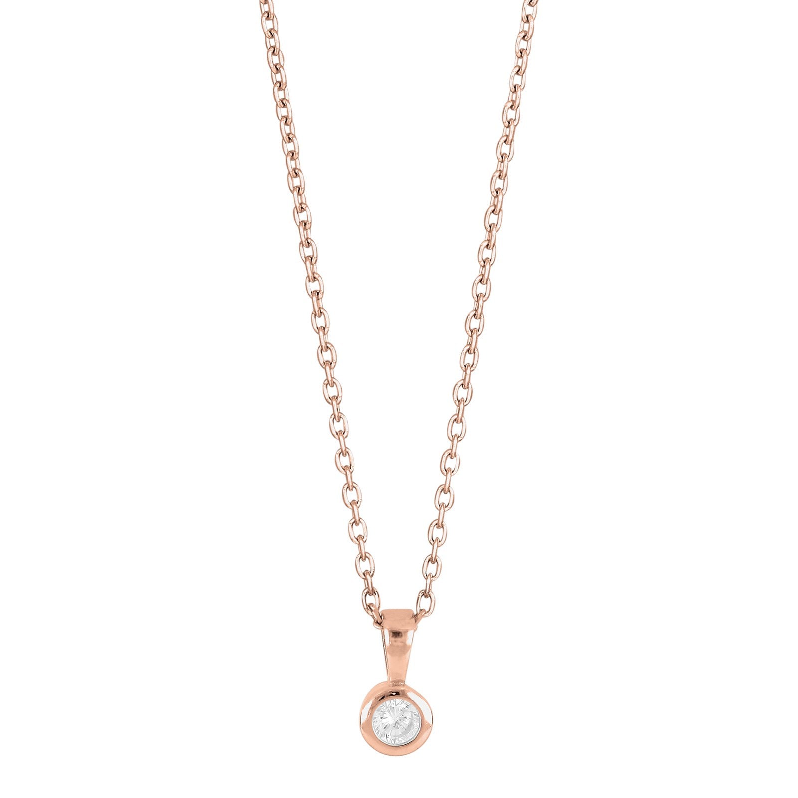 necklace in rhodium-plated sterling silver with a cubic zirconia in bezel
