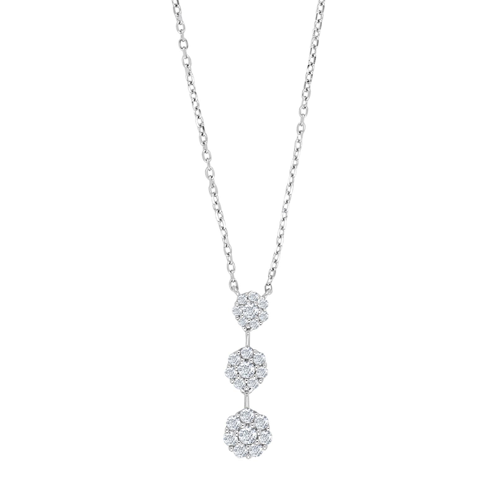 A feminine necklace with pendants that hang like pearls on a string. The shimmering cubic zirconia form a small flower that give it a special and elegant look. LisaNor is the most beautiful series with a pendant that lights up the room. Match the chain with earrings from the same series for a complete look.