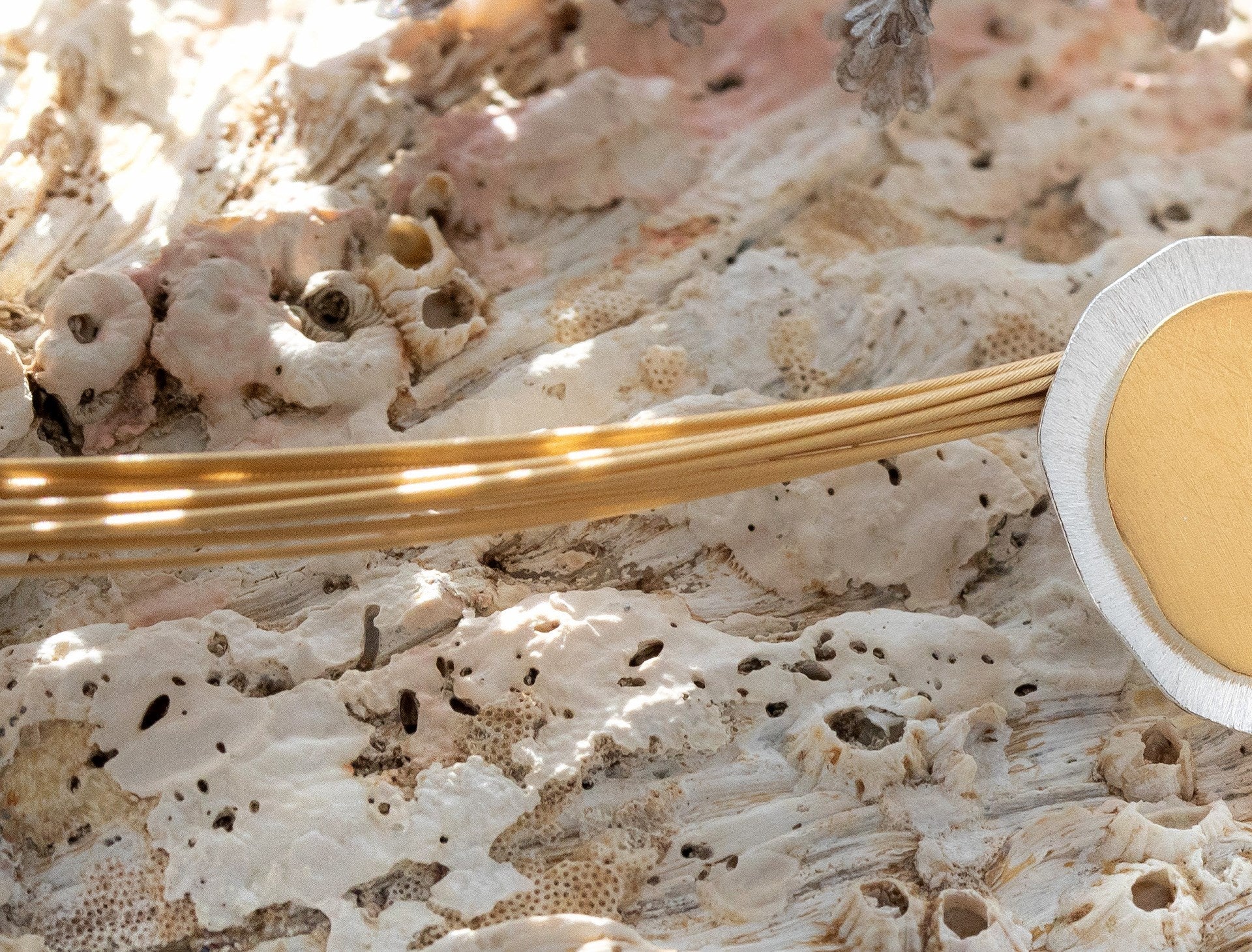 Elaborately crafted choker made of 12 fine, gold-plated stainless steel strands, which are harmoniously brought together in a double clip closure. The new, practical closure type makes it particularly easy to open and close. Also available in other designs.