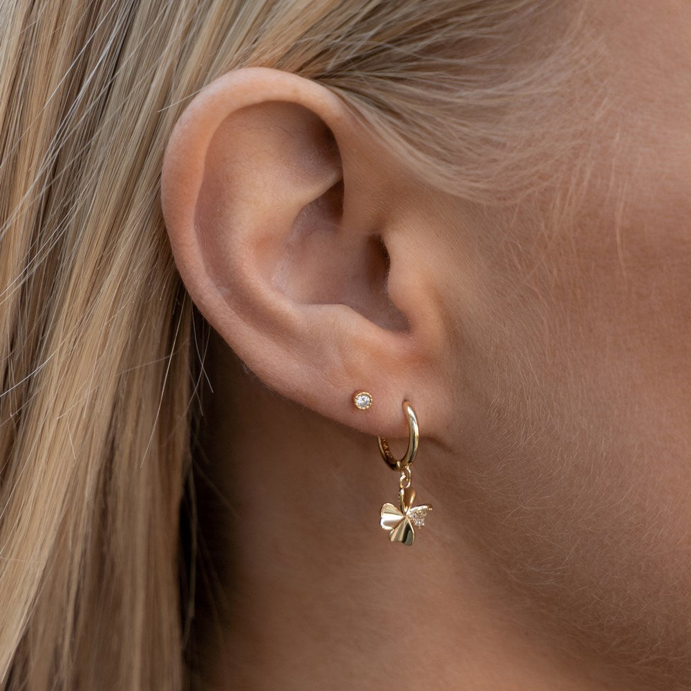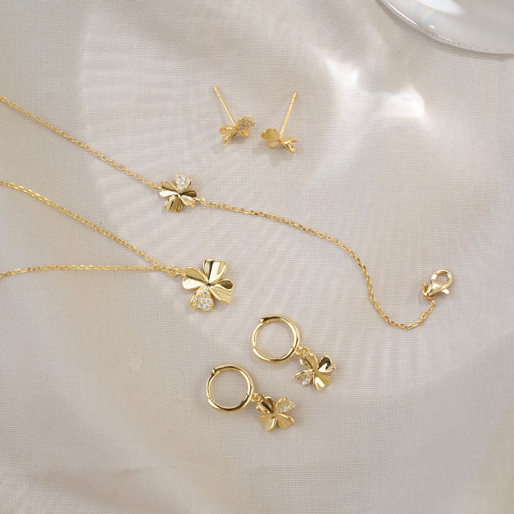 Such beautiful earrings with clover motif for any woman who loves volume and stylish design. These earrings are just so nice and decorate the ear in the finest way. On one of the clover leaves you’ll find cubic zirconia that give a perfect contrast to the other three leaves that have a shiny surface.