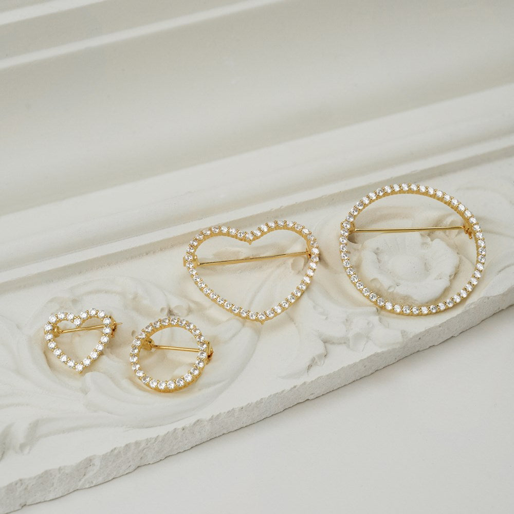 The brooch is adorned with shiny cubic zirconia that reflects the light in a very special way and adds a touch of luxury to your style. The carefully framed stones form a circular shape, which gives a classic and at the same time modern look.