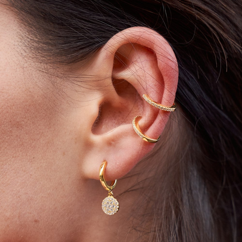 Creolerne måler 11 mm i diameter og det kubisk zirkonia besatte vedhæng måler 7 mm i diameter.