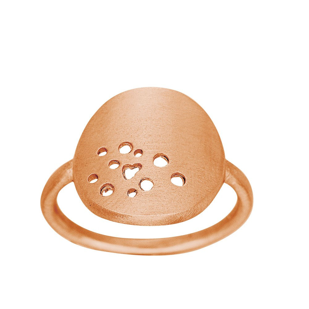 Stjernestøv og hjerter er standset ud som huller i ringen, som måler 14 mm i diameter. Ringen fås i størrelse 48 til 60 i lige størrelser.