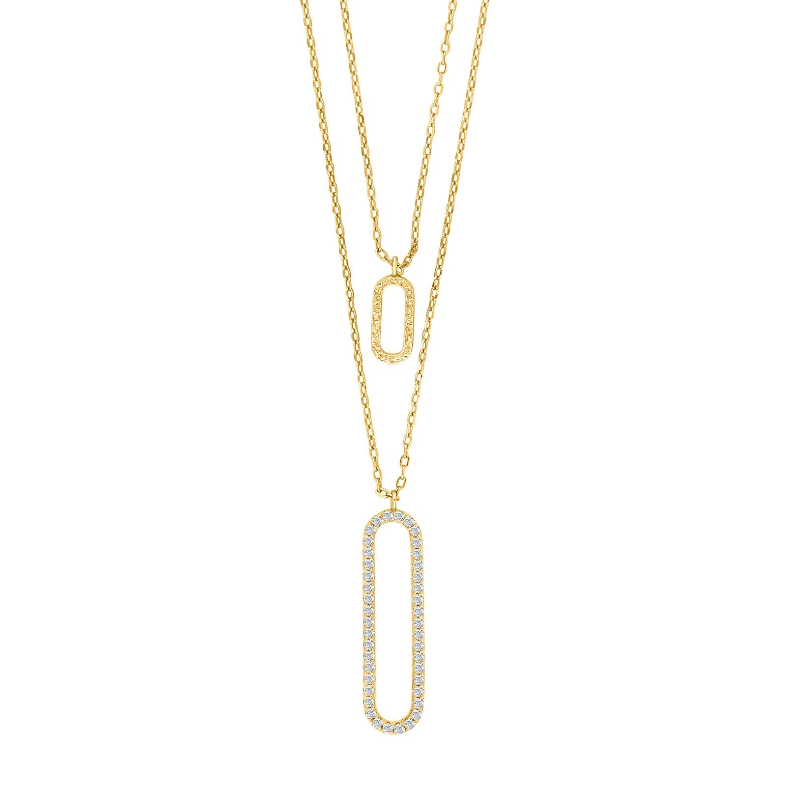 Halskæden er til dig, som ikke er bange for at tiltrække blikke. Halskæden har to vedhæng i to ovale former, hvis størrelse og udtryk er forskellig. På den største er påsatte, kubiske zirkoner, hvor den mindste form har en lethamret overflade. Med denne style får du to halskæder i én, hvilket giver et feminint og sammensat look. Stacking er blevet en trend, hvor du sammensætter flere halskæder på en gang. Helt perfekt til en sød bluse på en aften ude med kæresten.